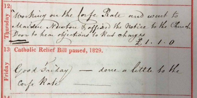 Working on Broad Maine Poors Rate Godmanstone inclosure and part of the day subdividing Allotments on the Map |