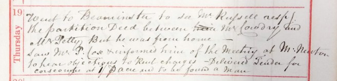 Messrs Gundry and Dennis Journey to Bridport to meet Mr Knighton the partition Valuation- worked in the afternoon at Loders |