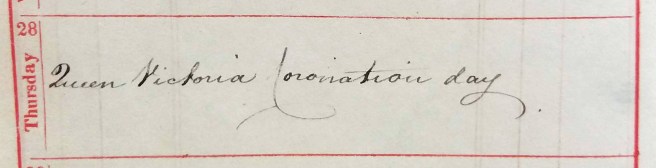 The inside of the 1838 diary. Note the printed ‘signature’ which differs from the one on the front page. He used the two types of signature on his map in a variable fashion.