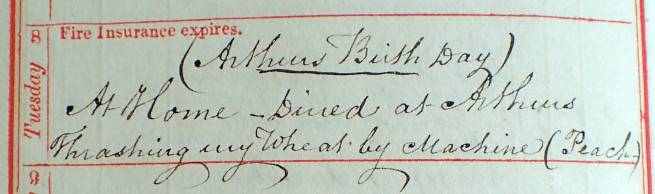 [Arthurs Birth Day] At Home Dined at Arthurs Thrashing my Wheat by Machine [Peach] |
