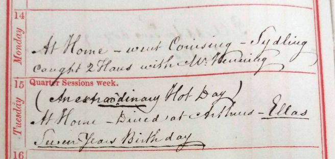 At Home went coursing with Arthur and Mr Gurney [caught 2 hares] |