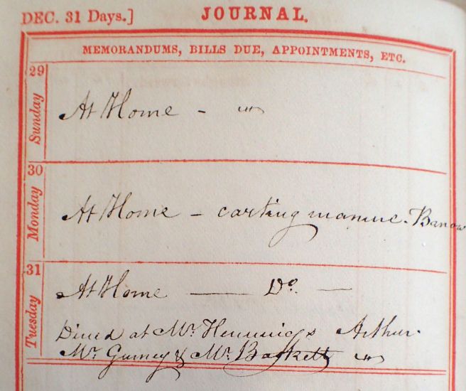 At Home – Dined at Mr Basketts with Mr & Mrs Gurney Arthur & Miss Pope |