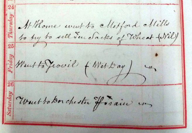At Home and went to Metford Mills to try and sell Ten sacks of Wheat [nil] |
