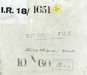 The meeting would have laid the ground work for an agreement and we may imagine that Septimus Smith, on the one side and the landowners on the other, set to work to thrash out a deal. In theory the rent-charge was easy to calculate, as it was based on the average value of the actual tithe that the parishioners had paid in each of the seven years preceding Christmas 1835. If good records had been kept by all sides then we may assume that everything proceeded smoothly. Despite the fact that there were over forty land owners in Child Okeford the evidence is that things did proceed smoothly and a second meeting was called for October 3rd 1838 when, it would appear, that both parties were almost ready to agree terms. The commutation process generated a large number of sundry documents which were gathered together in a tithe file [in reality a folder] created for each parish and held in the offices of the Tithe Commission in London. The contents of these files varies as they were ‘weeded out’ in a haphazard manner during the early 20th century; fortunately there is sufficient remaining in the Child Okeford file to give us a feel for the process.