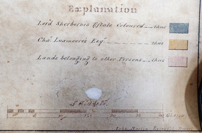 There are two maps concerning the Chilfrome inclosure held by the DHC. Neither appear to be the definitive map that was annexed to the award; both appear to have been prepared as private commissions for Lord Sherborne and a Mr Charles Luxmore.
