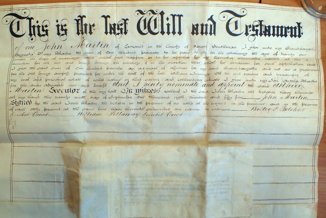 In old age Martin had lost his wife, three of his four children, his cousin, his whole extended family and so it comes as no surprise that in his will he left all but £100 to his son Arthur.