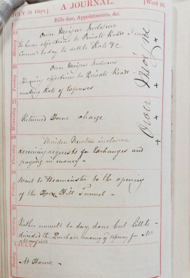 Ower Moigne Inclosure To hear objections to Private Roads I met Commnr today to settle Rate &c |