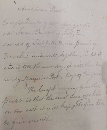 The diaries contain a number of blank pages and they are often written upon. Their meaning was lost long ago; some refer to important people, one a form of eulogy, another to agricultural jottings but the most interesting has to do with pigs. Martin refers on several occasions to slaughtering a pig but what do you do with a whole pig and no freezer? The answer is American Pickle.