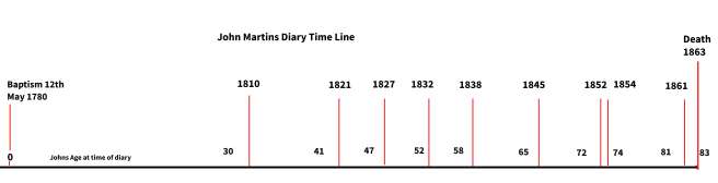This time line does not take account of the new diaries that have been found. As these have not been examined they are not included here.