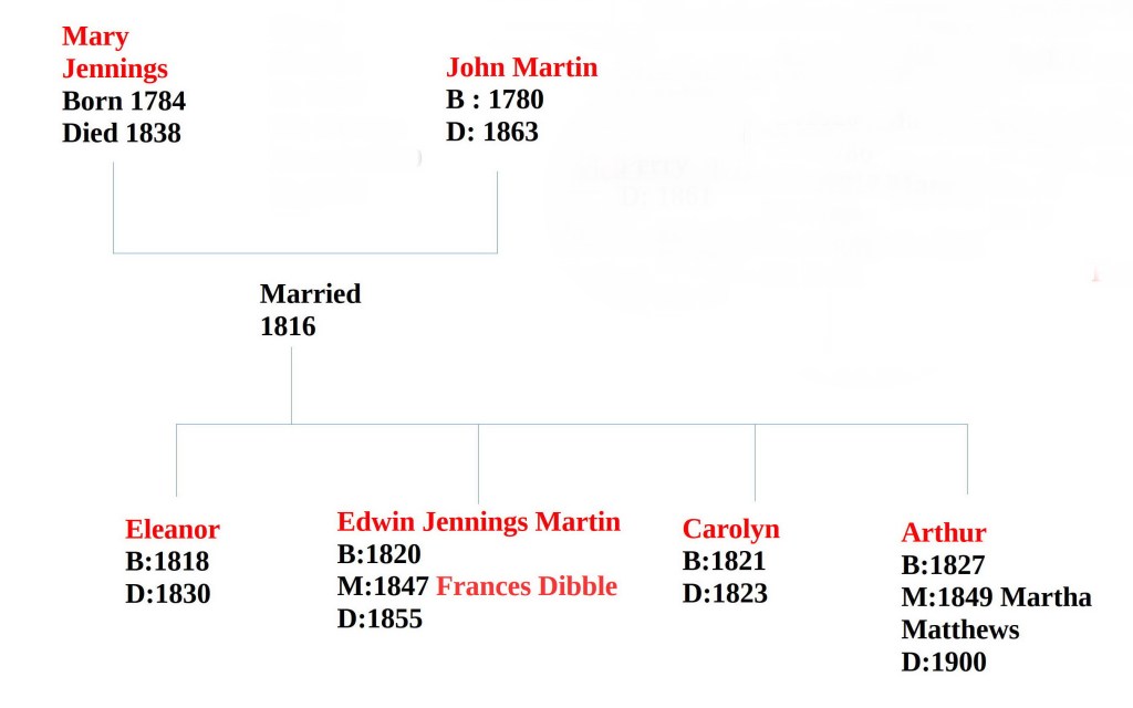 Nearer John Martin’s own age were two daughters of Wm Jennings Snr. Ann, who was the same age as Martin and Mary who was four years younger than him. Mary was to become his wife.