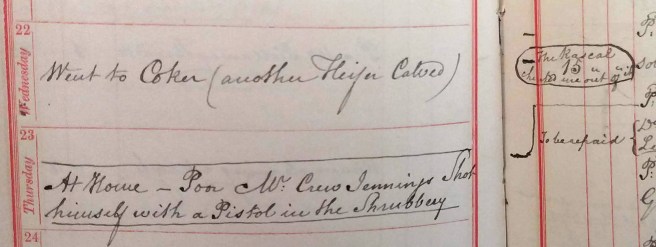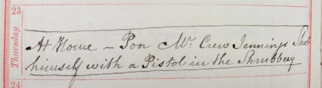 At Home – Poor Mr Crew Jennings Shot himself with a Pistol in the Shrubbery