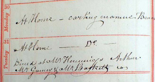 30th December 1861: At Home -carting manure B### 31st December 1961: At Home – Do- Dined at Mr Hennings Arthur, Mr Gurney & Mr Baskett