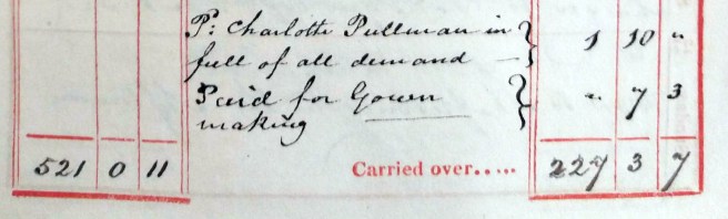 Pd Charlotte Pullman in full of all demand } £1 10s Paid for Gown making 7s 3d