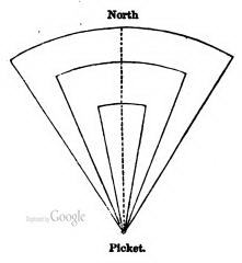 One of them was called the leader and he had been given 10 metal arrows. The follower fixed the chain at the start point and the leader stretched out the chain and at it’s end he thrust an arrow perpendicularly into the ground. The follower used this arrow as his new starting point and takes up each arrow as he moves forward. When he has gathered all ten he passes them to the leader and as they have ‘changed’ hands, they are referred to as ‘changes’. “In this manner the arrows are changed from one to the other at every 10 chains’ length, till the whole length of the line is measured, care being had to enter every such change in the field-book. At the end of the line, the number of changes, added to the number of arrows in the follower’s hand, and to the number of feet extending from the last arrow put down to the extremity of the line, gives the entire length measured.”[7]
