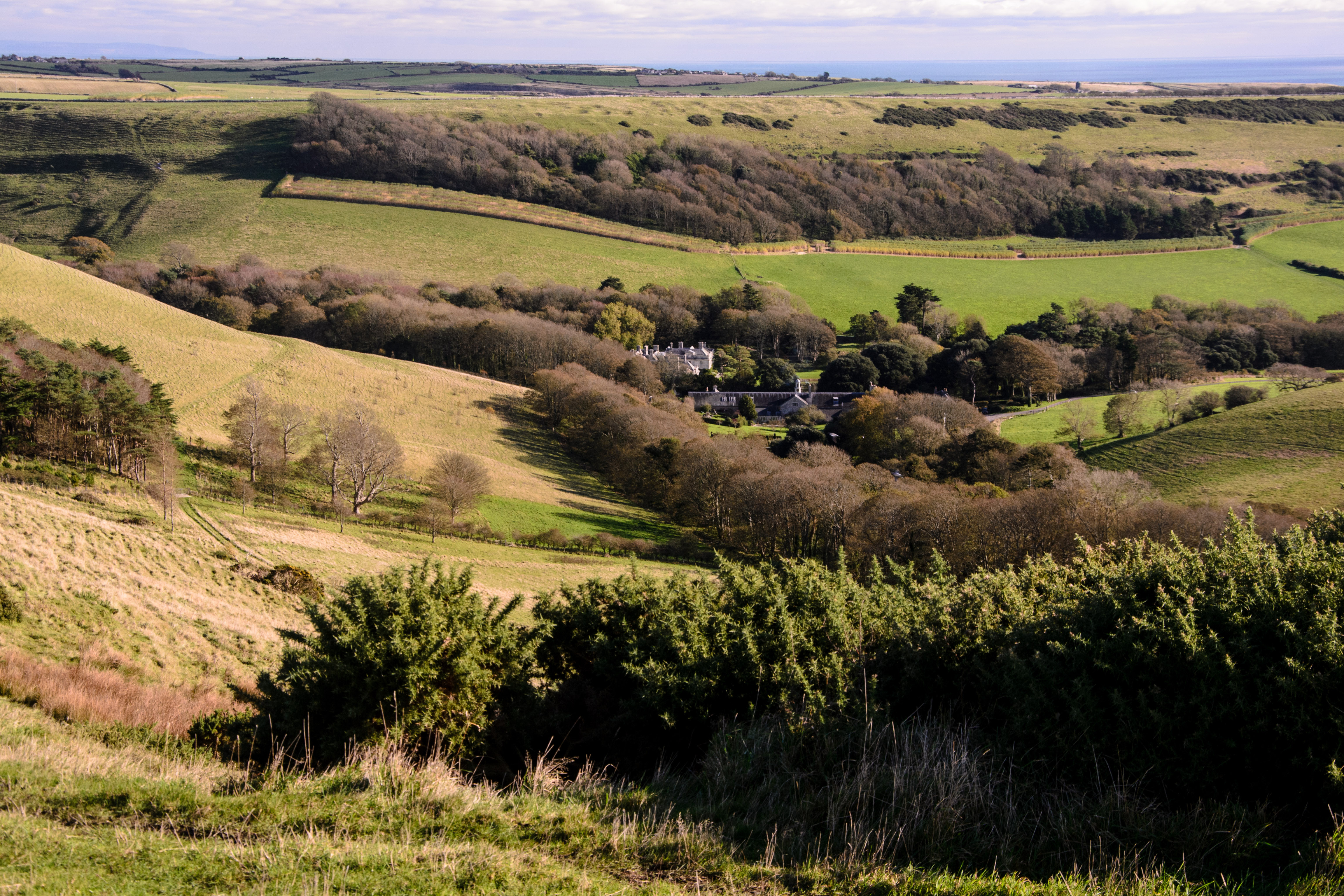 Nestling in the valley Encombe House and the servants quarters can just be made out.